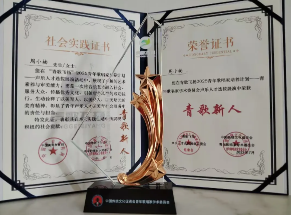 周小楠以作品《年轻姑娘应该懂得》通过全国视频选拔,在现场展演选拔中以作品《吉普赛女郎》的精彩演绎,荣获“青歌新人”的称号。