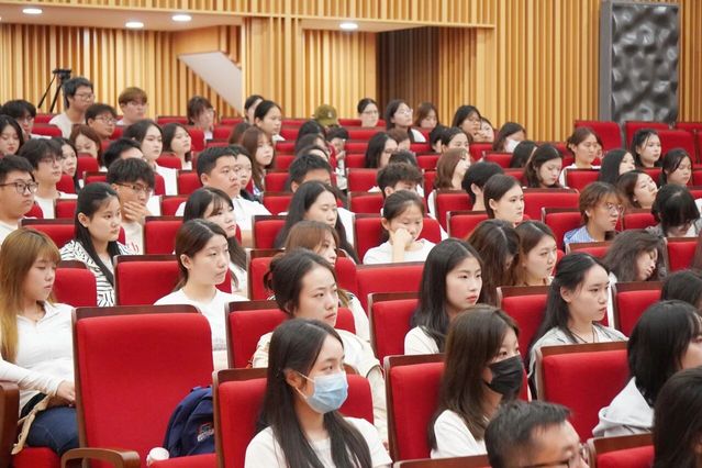 2024届优秀毕业生金昱彤,现为南京师范大学音乐学院研究生,她分享了自己在二师的成长历程与感悟。一是强调课堂学习与人际交往的重要性,她结合自身两门专业课的启发经历,指出二者是夯实成长根基的关键;二是建议明确目标定位,主动参与实践等“支线任务”,拓宽路径、打破就业壁垒;三是针对考研,给予新生宝贵建议。分享尾声,她寄语学弟学妹珍惜大学时光,勇于探索,在逐梦路上稳步成长。