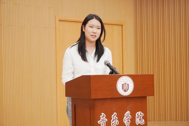 教师代表赵斌教授用热情洋溢的讲话欢迎2025级新同学成为音乐学院的新成员。她分享了学校辉煌的历史和独特的师范基因,特别是在艺术教育舞台上创造的成就。她说音乐学院有一群专业过硬、用心育人的老师,将是同学们未来成长路上坚实的后盾,希望新生们心怀“学高为师,身正为范”的信念,快速开启大学模式,在这里勇敢地追逐梦想,练就过硬的专业“硬实力”,掌握智慧教学的“软本领”,更要主动链接数智时代,在大学的熔炉里淬炼成钢,绽放属于自己的最耀眼的光芒。