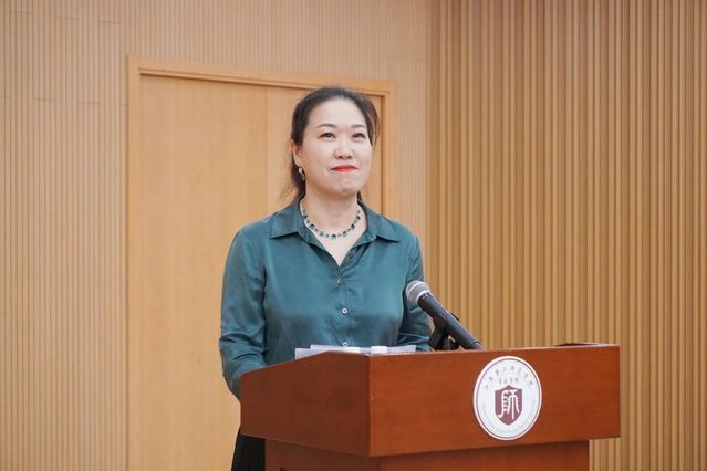 2010届优秀毕业生、现任江北新区少年宫副主任张自卫,结合自身从音乐学院毕业后深耕音乐教育的职业历程,以自身实践鼓励新生保持好奇心与开放心态,勇于突破边界、尝试新可能。她提出三点期望:一是坚守初心、明辨笃行,在复杂环境中保持专业热忱、信校尊师,提升社会洞察力;二是把握机遇、勇于探索,主动尝试以突破局限、实现成长;三是稳扎稳打、厚积薄发,明白成长需积累,无需急于“通关”,认真前行自会有收获。她致谢母校培养,以“文脉不断代代传,心中有根不怕风来摇”为结束语,祝愿学弟学妹在大学期间不仅收获学业与履历,更能明确热爱、找准方向与使命,成长为新时代有为青年。
