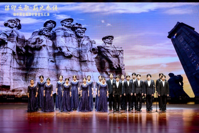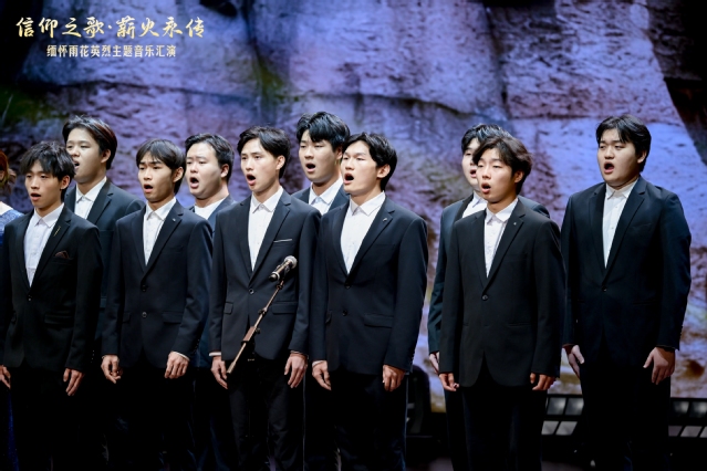 9月27日下午,在第十二个烈士纪念日来临之际,“信仰之歌·薪火永传”——在南京雨花剧院深情上演。活动由雨花台烈士纪念馆联合南京师范大学、江苏第二师范学院、南京艺术学院、南京晓庄学院等5所高校以及南京郑和外国语学校、南京市雨花外国语小学等2所中小学校共同举办,近400名高校师生代表在音乐中缅怀雨花英烈,传承红色基因。作为第二批雨花台—高校“大思政课”实践教学基地联盟单位之一,江苏第二师范学院音乐学院师生现场倾情演绎雨花英烈“信仰之歌”系列作品,带来多个精彩节目。