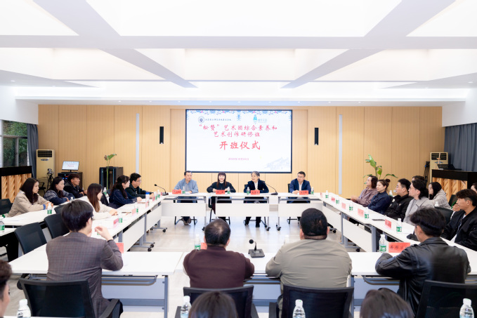 2025年10月21日,拉萨市墨竹工卡县松赞艺术团综合素养和艺术创作研修班在音乐学院顺利开班。校党委常委、副校长赵玉蓉,党委常委、宣传部部长李安林,党委常委、统战部部长陈蓓,墨竹工卡县文旅局副局长郎卡洛追,南京市鼓楼区文旅局副局长张青湖等领导嘉宾出席开班仪式。仪式由音乐学院党总支书记尹彬成主持,来自南京艺术学院、安徽艺术职业学院、南京市民乐团等单位的特邀专家以及音乐学院教师团队、松赞艺术团全体学员共同参加。